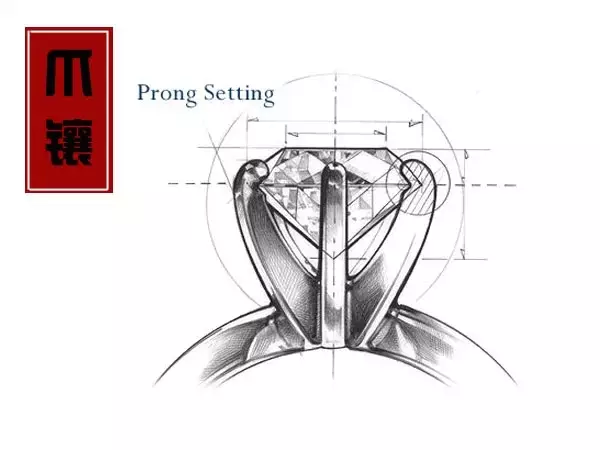 顾名思义,爪镶就是金属做成爪子一样,把钻石镶嵌在里面。一般常见的,我们分为四爪镶嵌和六爪镶嵌。这种镶嵌方式比较牢固,也比较突出,而且由于爪子比较细小,从而不会影响钻石的光线,从各个角度都可以看到他的璀璨光芒。
