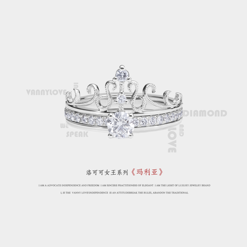 设计灵感来源于欧洲皇室女皇加冕皇冠,步入婚姻殿堂的那一刻,正如一场皇冠加冕的仪式,一戒多戴,愿你以后是娇贵的公主,亦是优雅的女王。