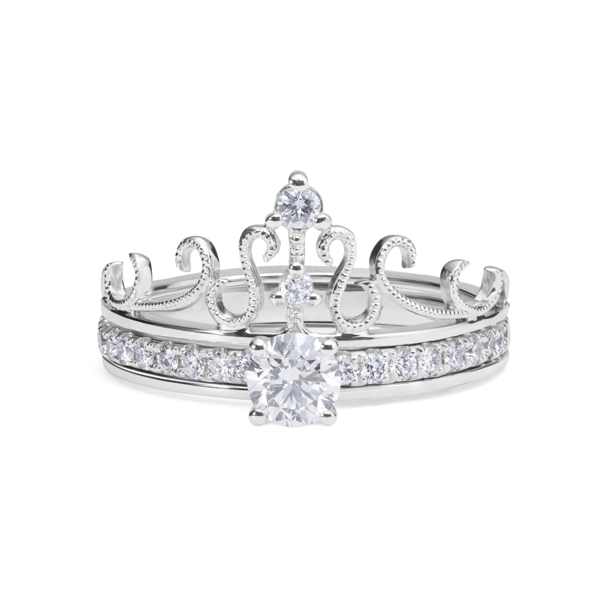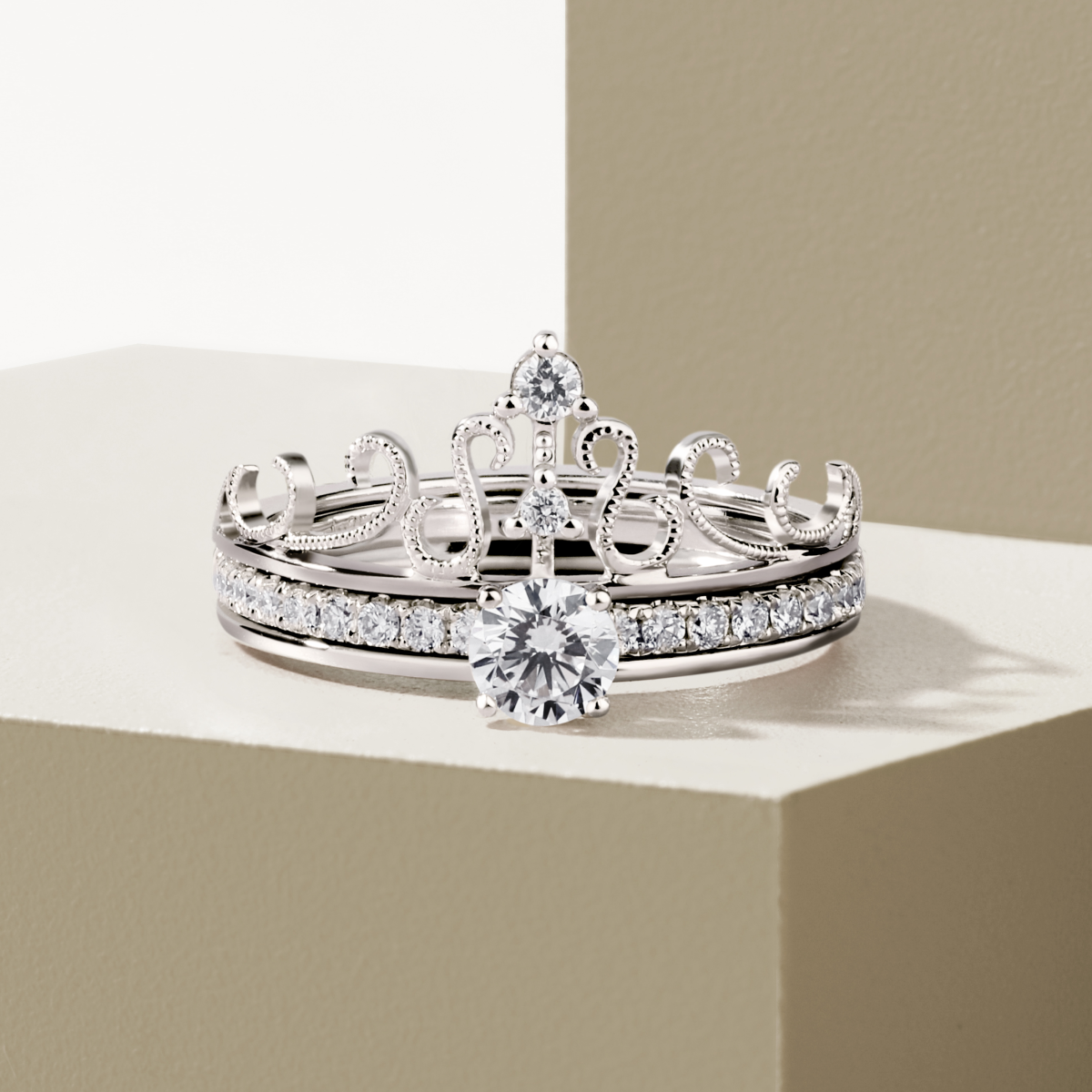 步入婚姻殿堂的那一刻,正如一场皇冠加冕的仪式。一戒两戴,愿你以后是娇贵的公主,亦是优雅的女王。