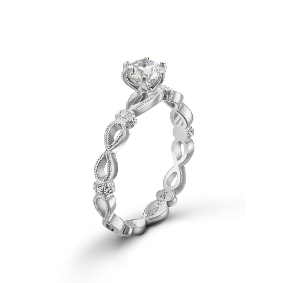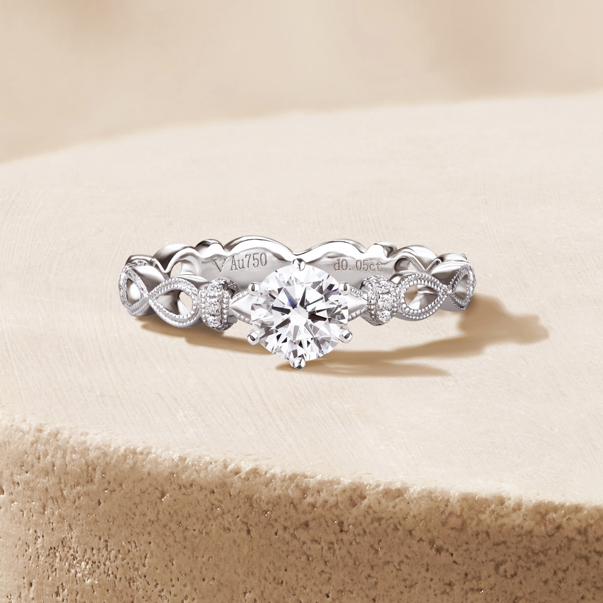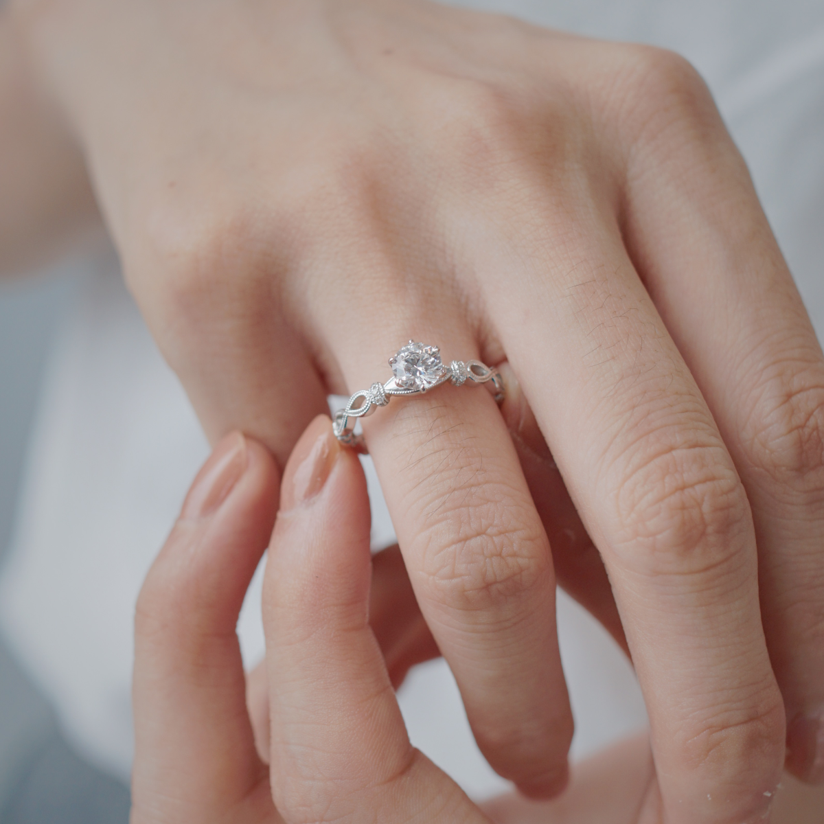 将∞的理念在指尖重现,仅仅两条相交曲线,便勾勒出纤细的旋转戒臂,优雅且含义深远。
