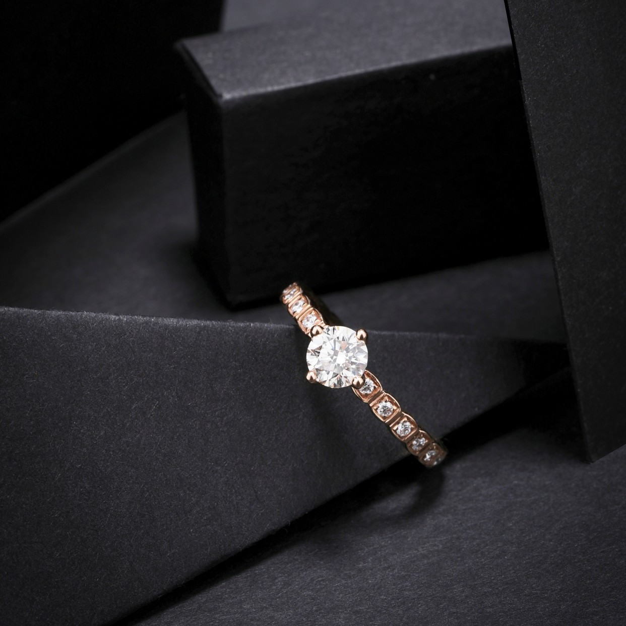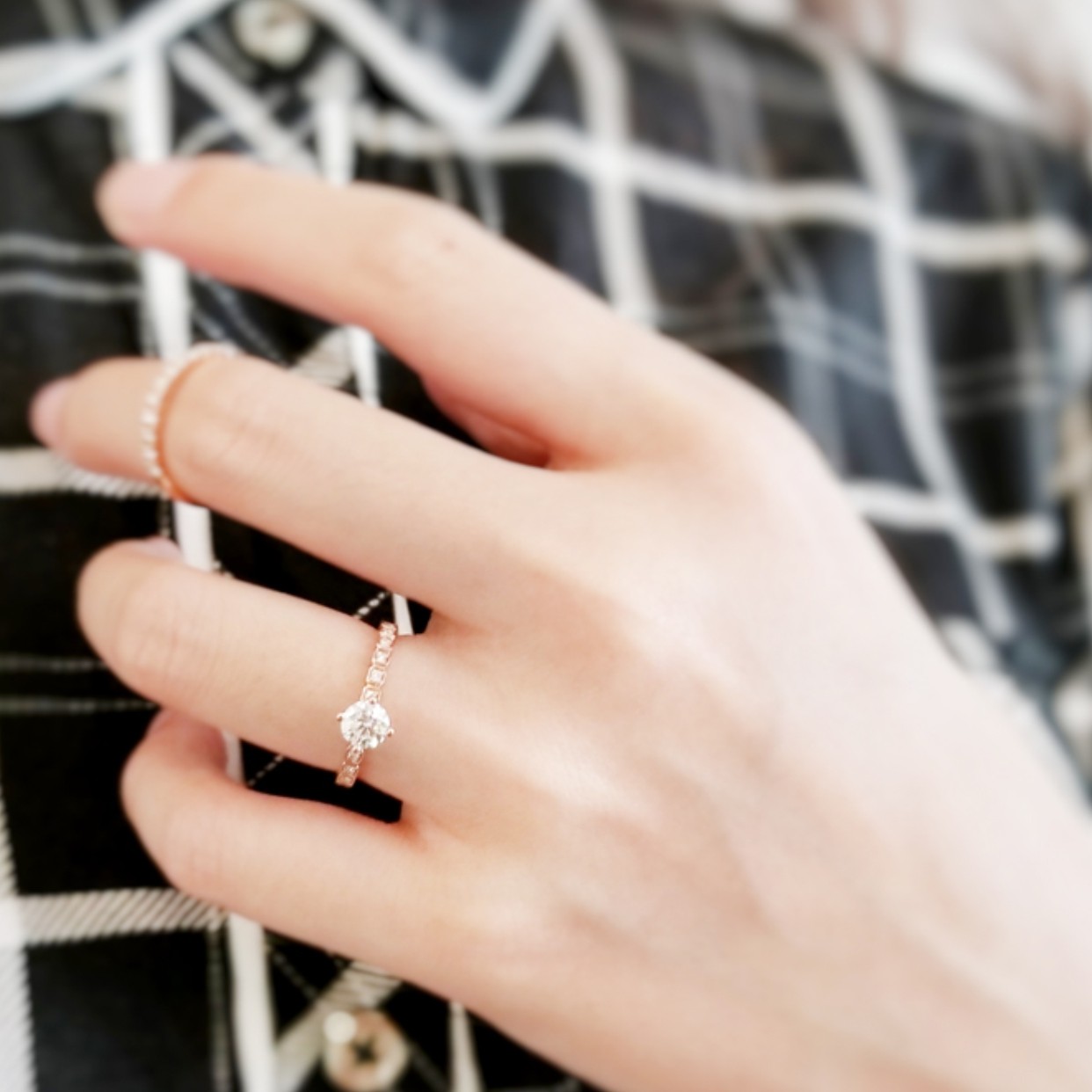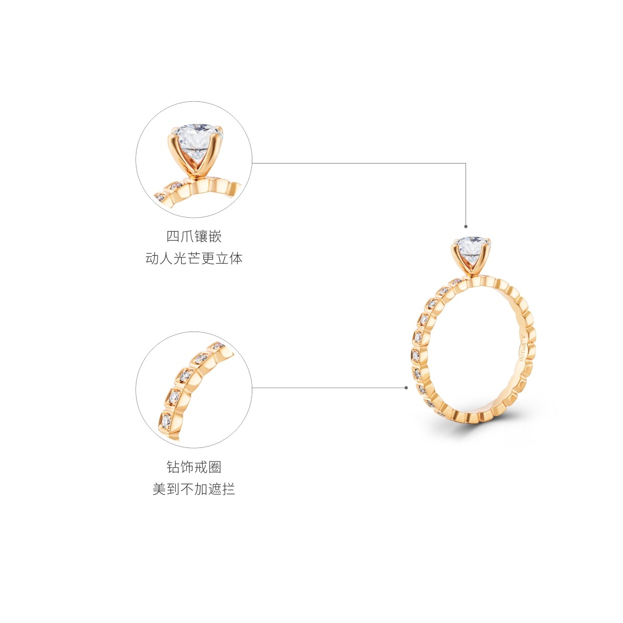 纤细戒臂排镶24颗天然钻石,璀璨闪耀