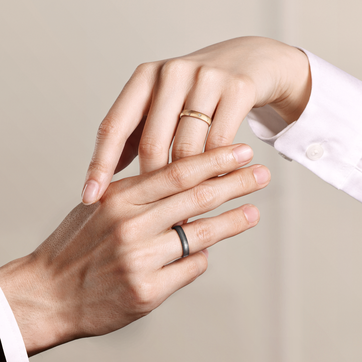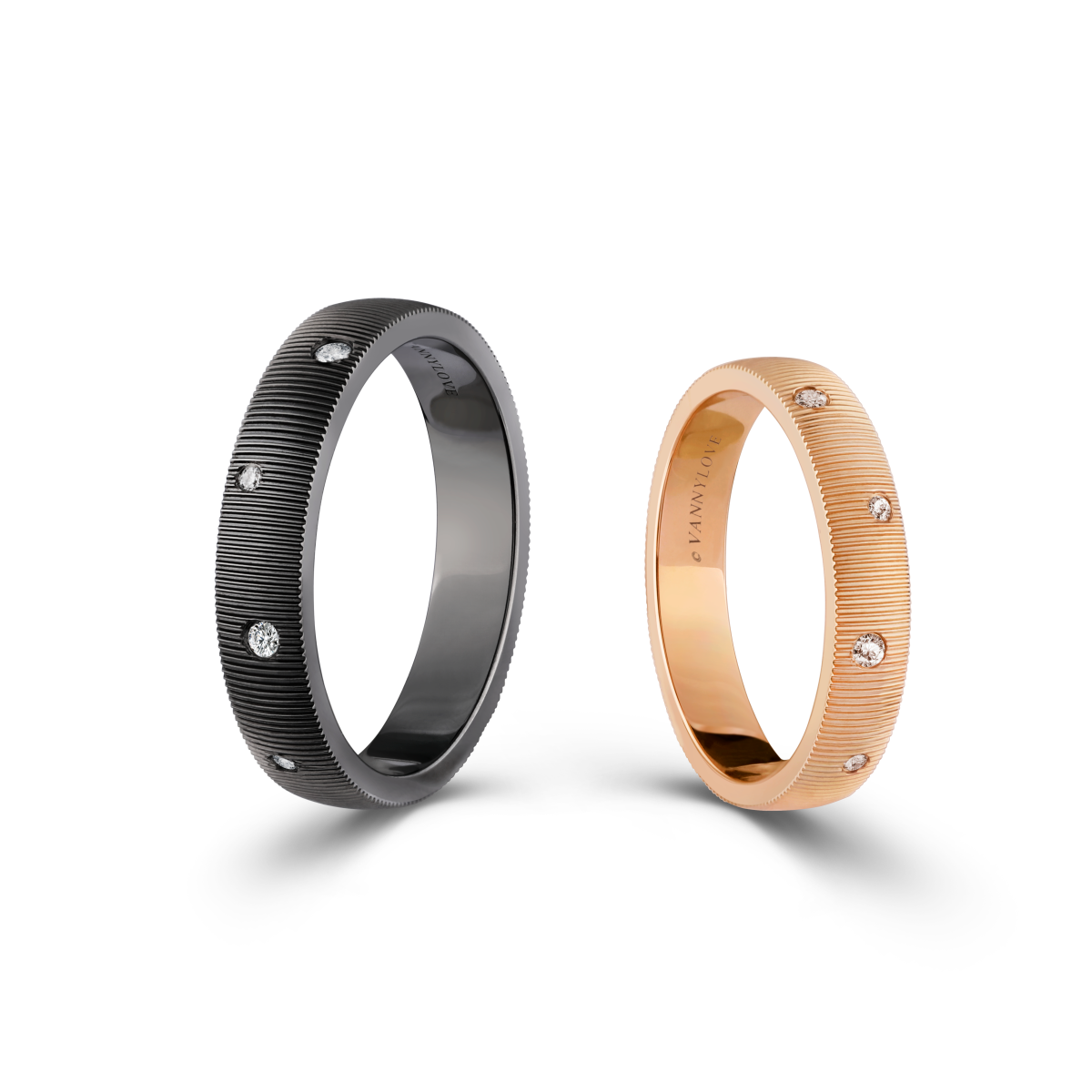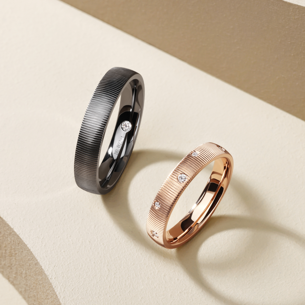 横断纹压花设计,是一圈圈铭记着爱的年轮,嵌入年轮中的钻石,则是幸福时刻的见证。