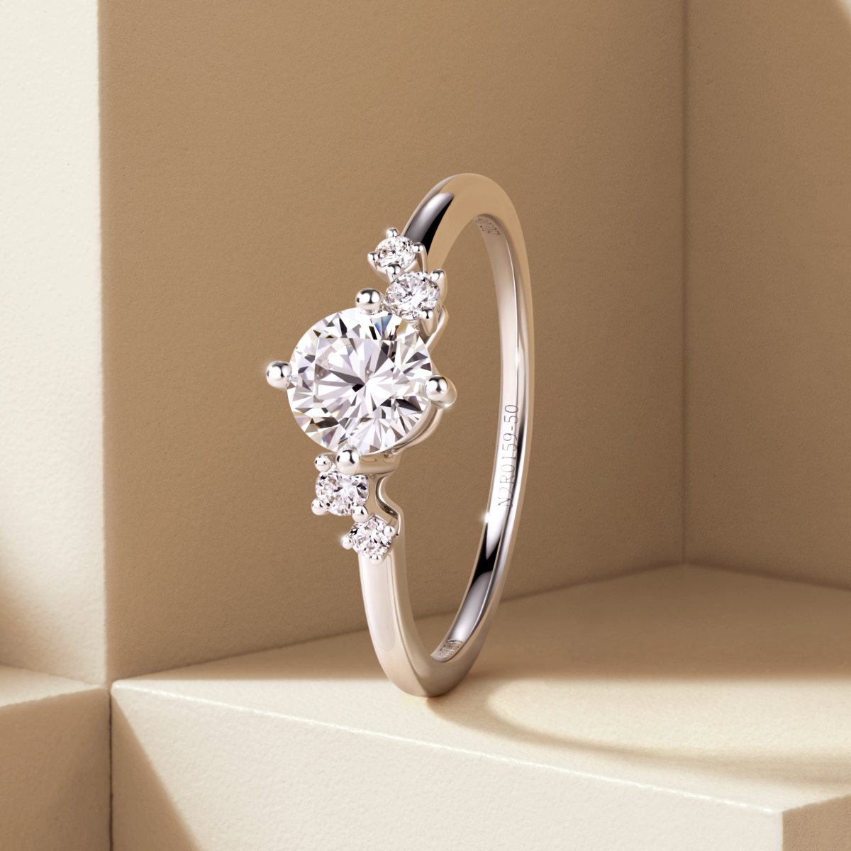 用错落排列的辅钻再现闪耀星辰 与主钻光芒交织辉映 描摹出星月相伴的唯美画面